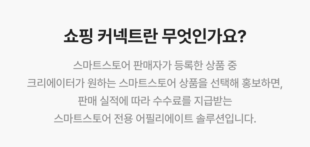 쇼핑 커넥트에 관심 있으신 분들은 위에 올려놓은 '쇼핑 커넥트 시작하기' 버튼을 눌러주세요! 시작이 반이랍니다^^