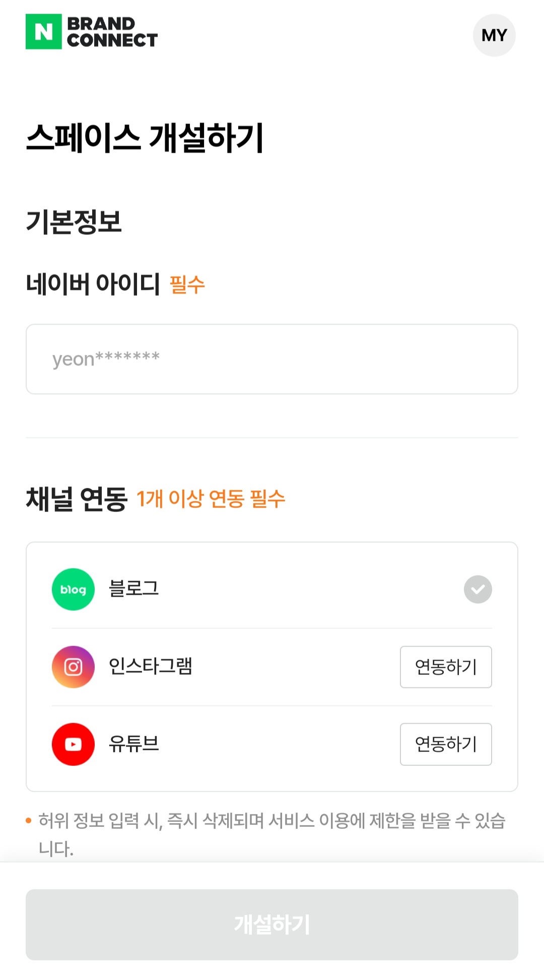 쇼핑커넥트 가입하기를 누르면 이런 화면이 뜹니다. 저는 블로그만 운영하기 때문에 블로그만 체크했습니다.