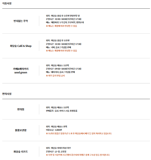 - 화담채는 별도 입장권 필요하며, 당일 잔여 수량에 한해 현장 구매만 가능