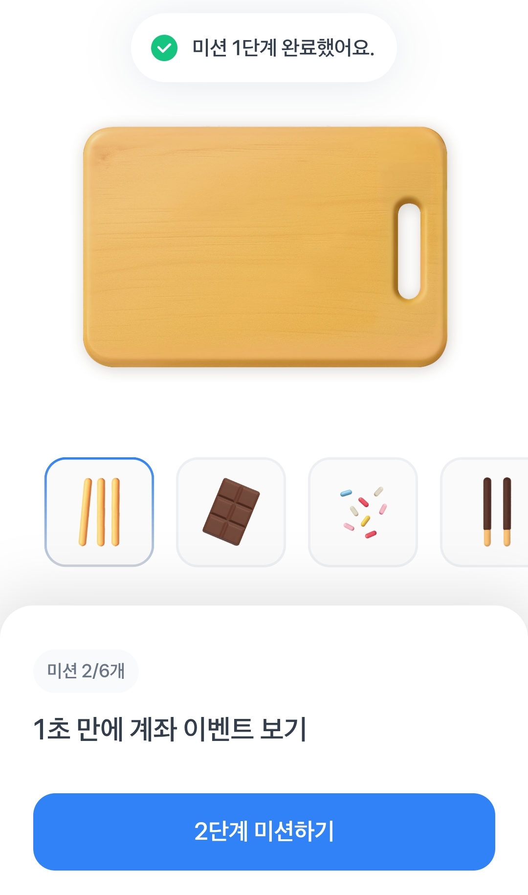 토스에서 주는 미션을 클리어해 나가면 되는데 너무나 간단해서 어렵지 않게 6단계까지 가면 됩니다.