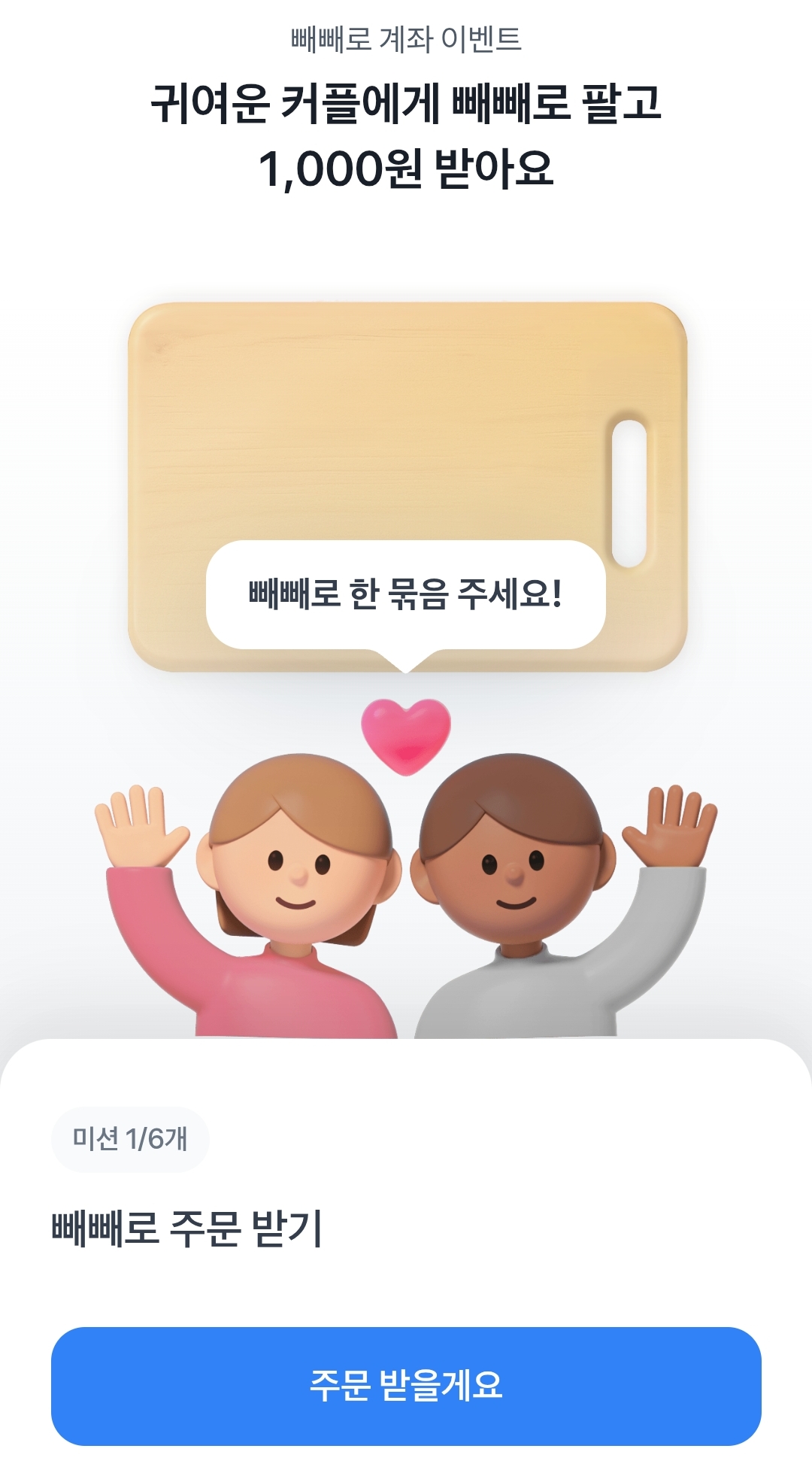 빼빼로 주문하는 이벤트에 들어가면 이렇게 빼빼로 주문받기 버튼이 있답니다.