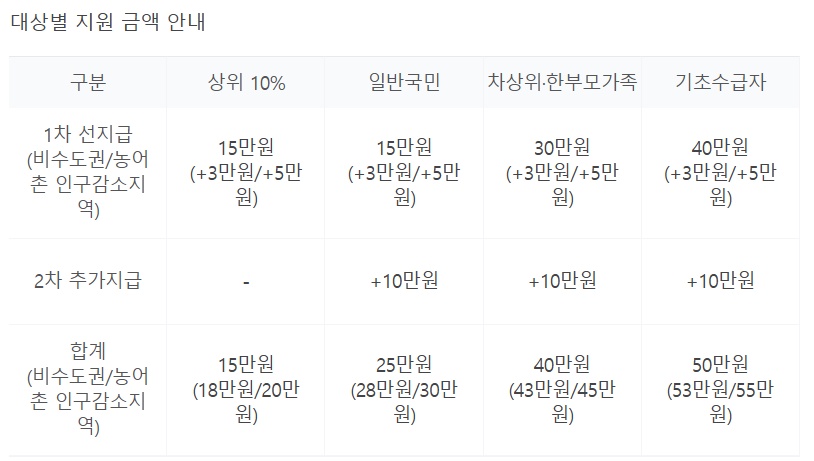 | 일반 국민 | 15만 원 | 최대 5만 원 | 10만 원 | 30만 원 |