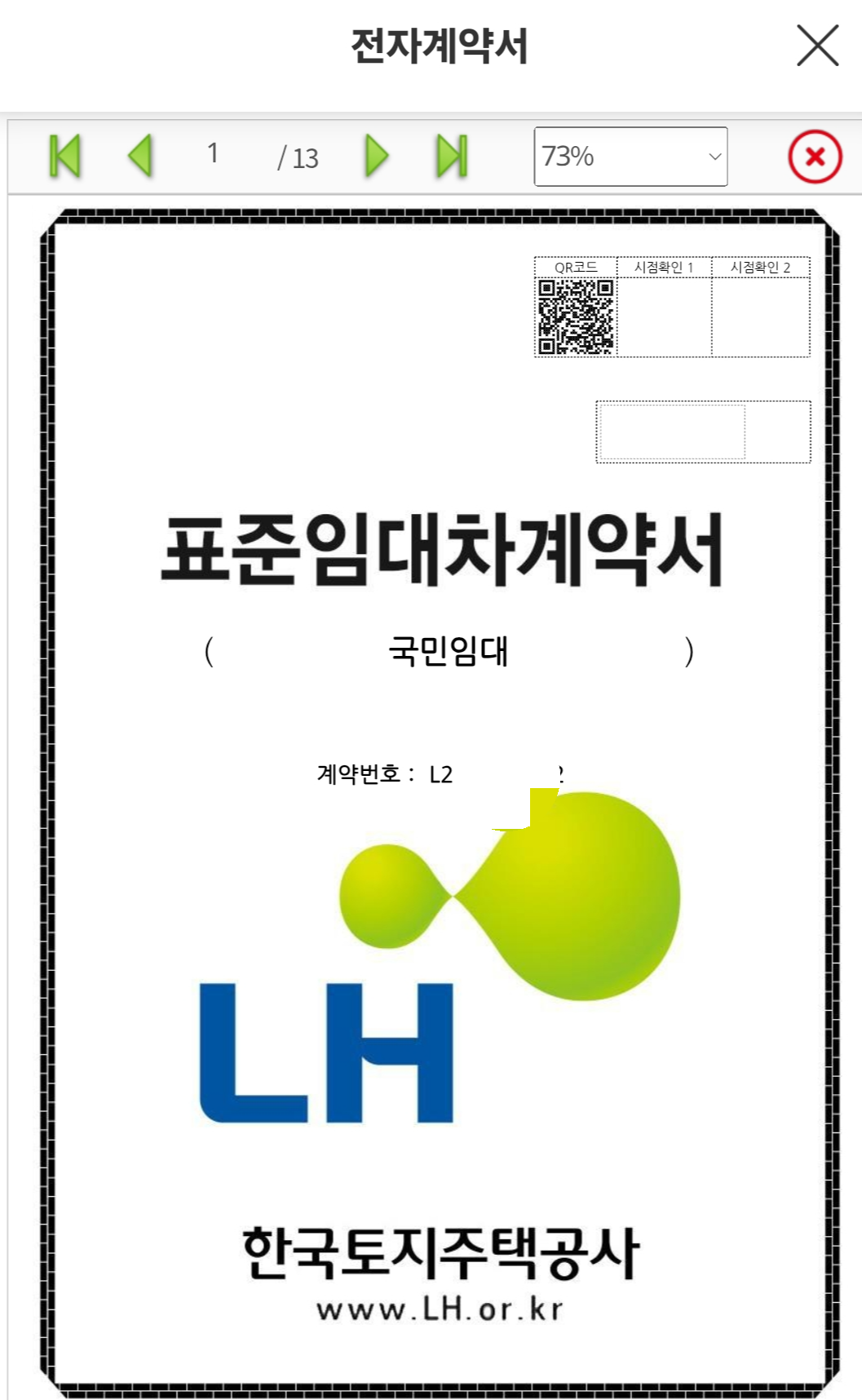 서명하기 버튼을 누르니 이처럼 LH 한국토지주택공사에서 보낸 표준임대차계약서에 들어가지네요~
